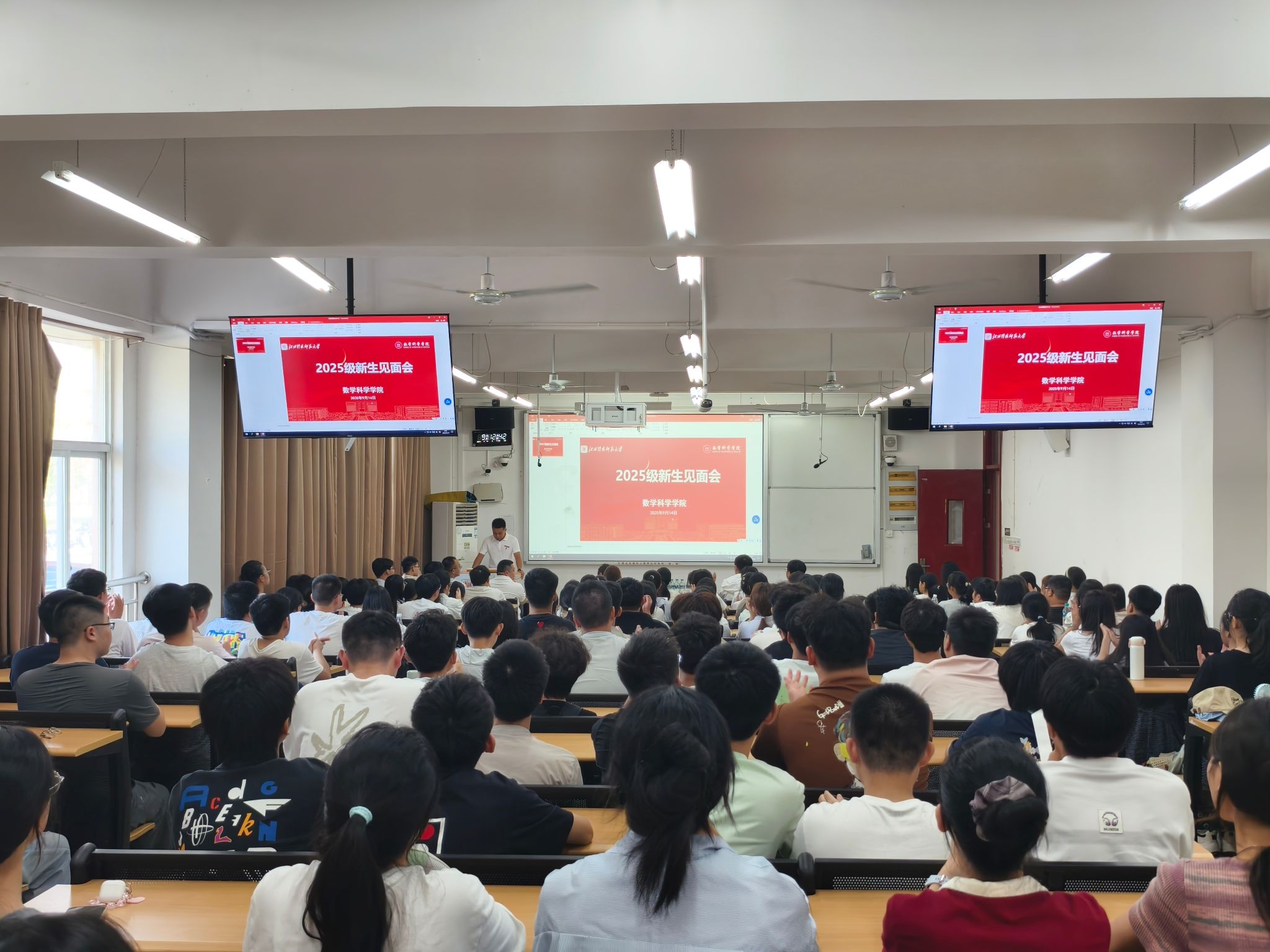 会议在温馨的氛围中正式拉开帷幕。学院党委书记熊鹰首先致欢迎辞,代表学院对2025级新生的到来表示热烈祝贺与诚挚欢迎,勉励同学们立足数学学科特色,树立远大理想,脚踏实地追求真知。刘兴围绕大学生活适应与成长规划提出建议,希望新生尽快转变角色,积极融入学院大家庭。