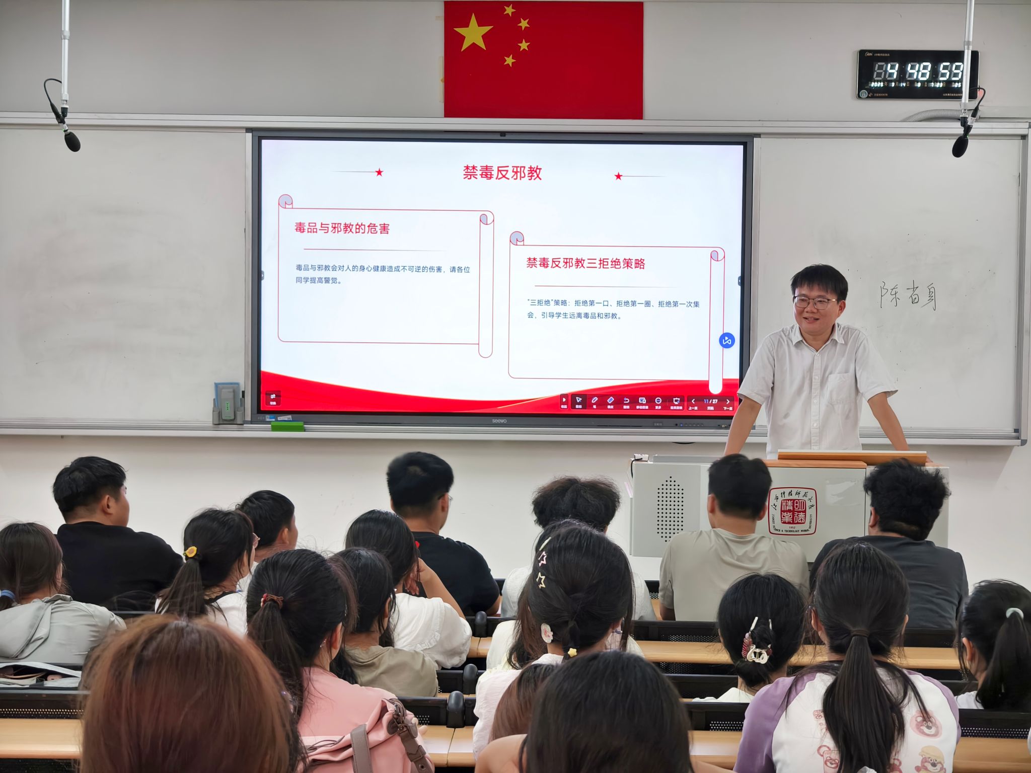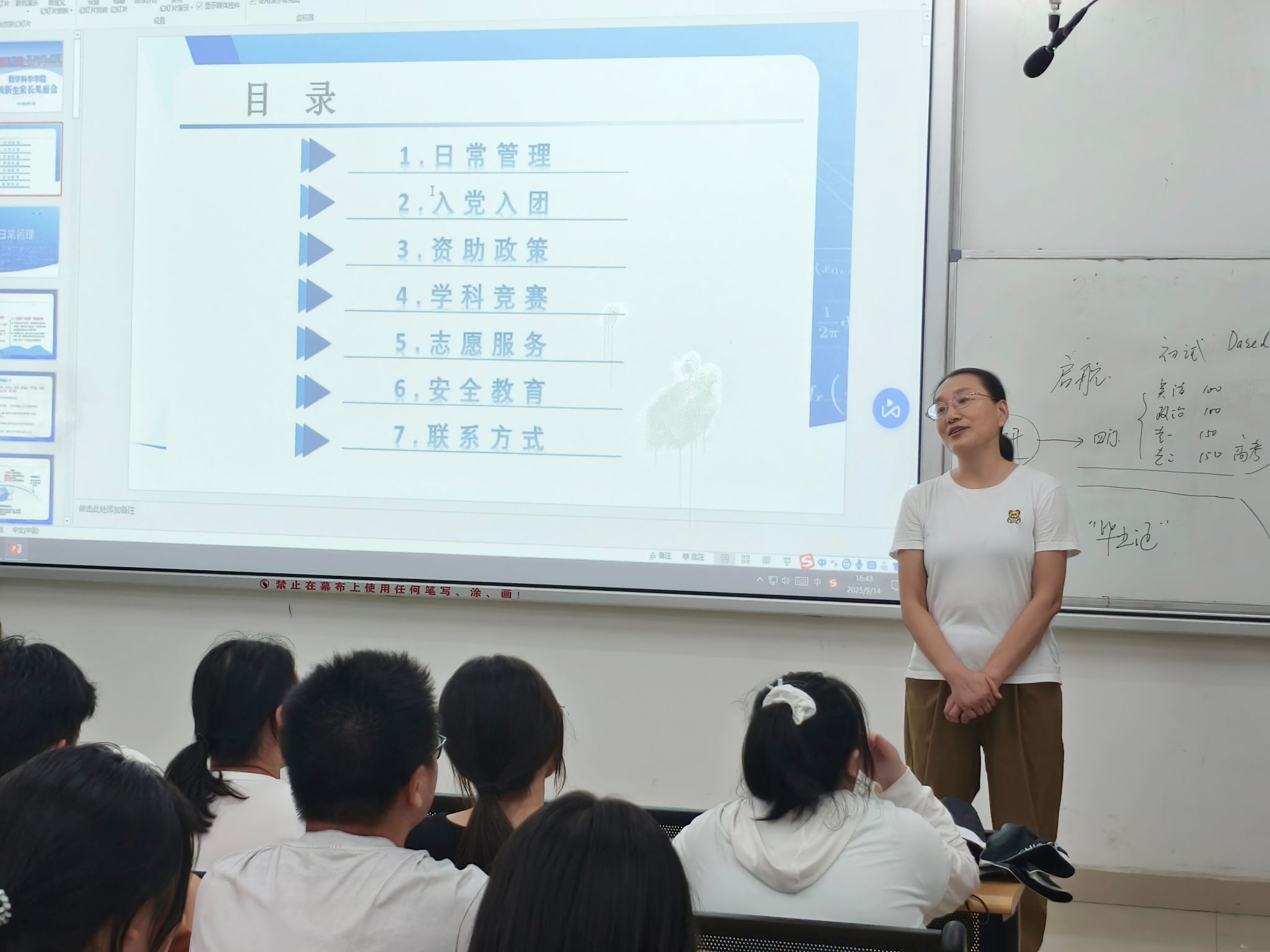 新生班主任郑睿颖、孙合庆、肖城随后开展新生适应性教育与安全教育专题宣讲,内容涵盖国家安全、消防安全、用电安全、交通安全、反诈骗、防溺水等方面,并结合实际案例增强学生的安全防范意识。此外,老师们还介绍了学校资助政策体系,确保家庭经济困难学生顺利就学。